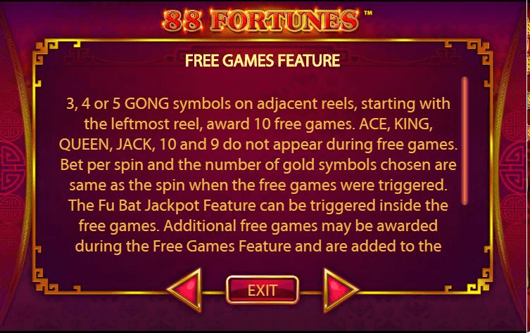 Vamos começar com o recurso Grátis Spins. Para desencadear esse bônus, você precisa colocar símbolos de 3, 4 ou 5 gong em bobinas adjacentes. Depois de fazer isso, duas coisas vão acontecer: