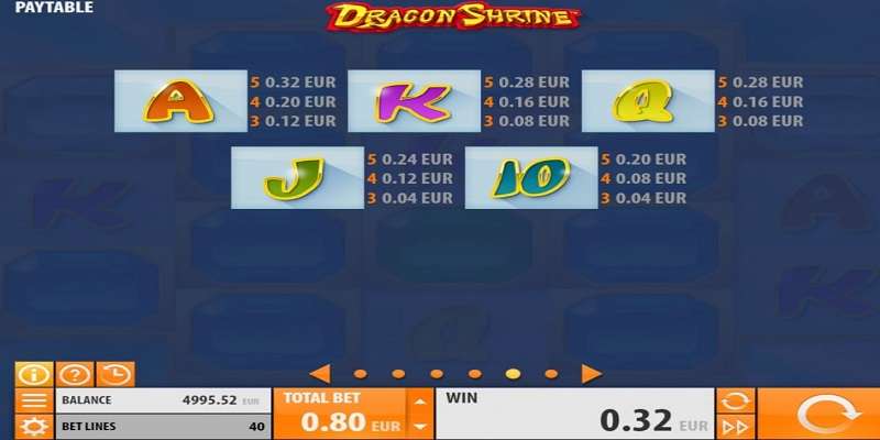 O Dragon Shrine representa o esforço do desenvolvedor de software para explorar as tradições e a cultura da cativante da Ásia. Na antiga mitologia chinesa, essas criaturas ardentes eram usadas apenas como símbolos de poder elementar, mas também é um prenúncio de boa sorte. As criaturas deste slot podem trazer boa sorte para você.
