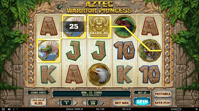 Princesa guerreira asteca é uma máquina caça-níqueis de 5 belas em execução no Play'n Go Software Provider plataforma. Você está em uma caça ao tesouro de bônus, além de 15 a 25 rotações gratuitas e cargas de símbolos únicos lucrativos, incluindo o selvagem muito especial que lhe dará uma vantagem.