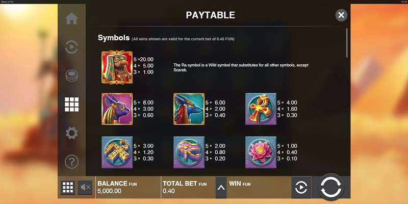 Blaze of Ra's Paytable
