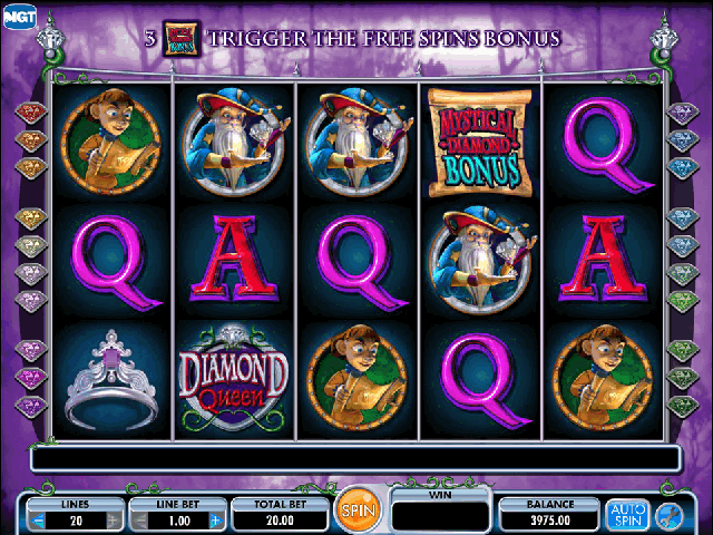 - Antes mesmo de começar a tocar de verdade, é melhor experimentar a versão slot de demonstração da Diamond Queen. Dessa forma, seu equilíbrio não se machucará e você será apresentado com as regras básicas do jogo.