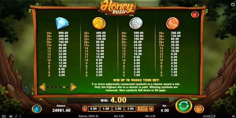O Honey Rush é um slot único em si por causa de seu design e jogabilidade, por isso é uma experiência diferente em si. O jogo oferece várias chances de vitória e você pode até obter um pagamento como 9000X sua aposta, que é bastante maior do que muitos slots disponíveis online. Existem diferentes níveis de recursos e bônus especiais no slot. Você pode até aproveitar os símbolos em cascata neste jogo e, com esses ícones, pode substituir a grade inteira por símbolos semelhantes e obter vitórias repetidas de cada vez. Não há necessidade de baixar o Honey Rush ou qualquer software para reproduzir esse slot, pois está disponível online.