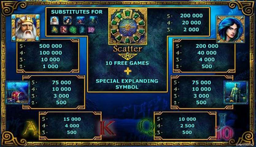 No entanto, a maior recompensa é da seção do jackpot deste título de slot. Com uma enorme vitória até 500.000 moedas, todos os jogadores estão realmente com sorte. Tudo o que você precisa fazer é apostar a unidade de apostas máxima em 10 linhas de pagamento que já foram acionadas, com o rei Neptune aparecendo na tela.