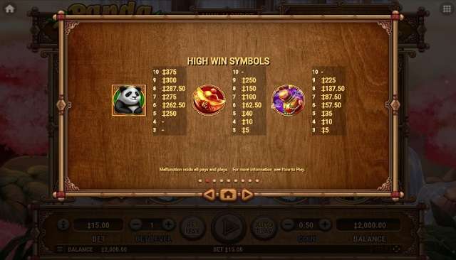 A aposta mínima que você pode fazer é de 0,30 créditos e a aposta máxima neste jogo é de 6.000 créditos. Para obter uma grande vitória, você precisa conseguir uma combinação de 3 a 9 ícones semelhantes nos rolos. Se você conseguir aterrissar 10 ícones do Panda nos rolos, poderá ganhar 7,5 créditos por 0,3 créditos. O valor do prêmio aumenta com o aumento de seus créditos de apostas de acordo.