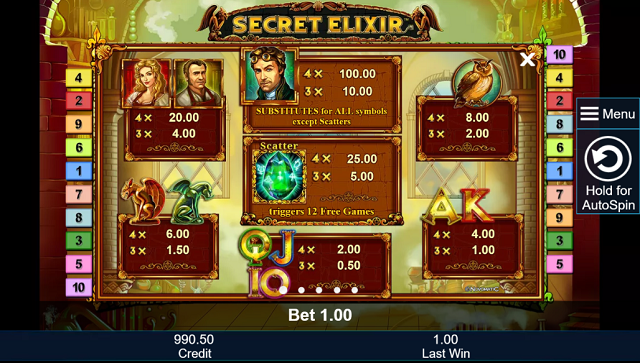 Secret Elixir Online Slot Design & Controls
