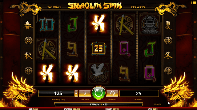 Você pode iniciar um slot de spin shaolin, definindo o tamanho da moeda para apenas 0,01, que se correlaciona com a aposta mínima necessária de 25 créditos ou 0,25 da sua moeda por rotação. O valor da aposta máxima difere do cassino para o cassino, mas geralmente ocupa o valor de 125 créditos/unidades de moeda.