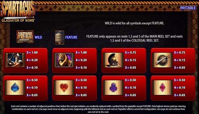 A versão da demonstração do Spartacus está disponível para todos os jogadores online. A versão demo não custaria nada, mas ajudaria você a conhecer melhor a jogabilidade. Depois de terminar a versão demo, você pode começar a reproduzir a versão paga. A versão paga traz prêmios em dinheiro real; portanto, se você tiver a sorte, poderá ganhar um ótimo pagamento girando os rolos a qualquer dia.